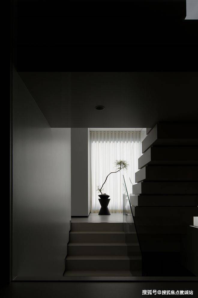 楼梯区完全被几何占据,自然光恰到好处的平衡,进一步呼应着空间的心境,衔接了生活和居所。