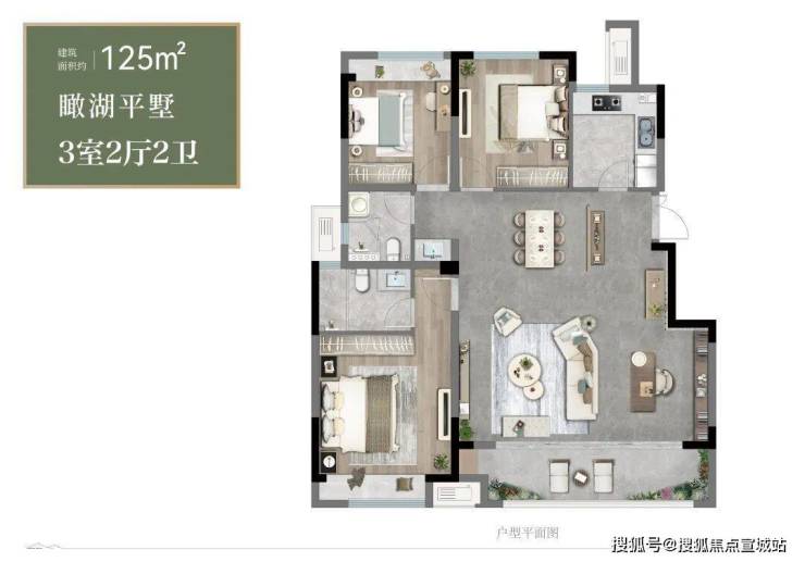125㎡3室2厅2卫:总价约231万,布局紧凑