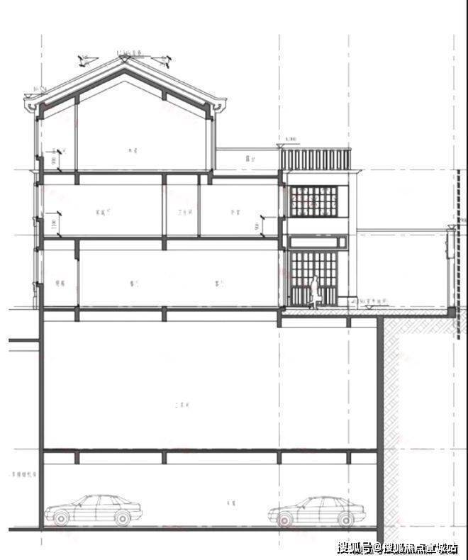 6号楼比较特别,是相对比较独立的类独栋了,标准地上3层,看看它的立剖面图: