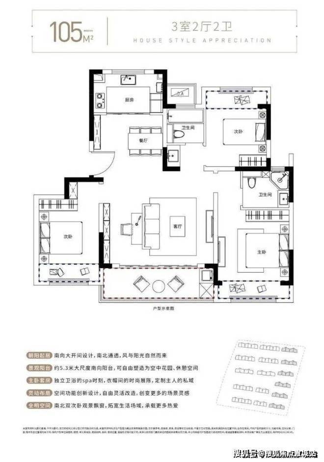 空间特色:得房率84%-87%(部分户型实际使用面积相当于高层110㎡),南北通透+双联阳台设计,地下室可拓展