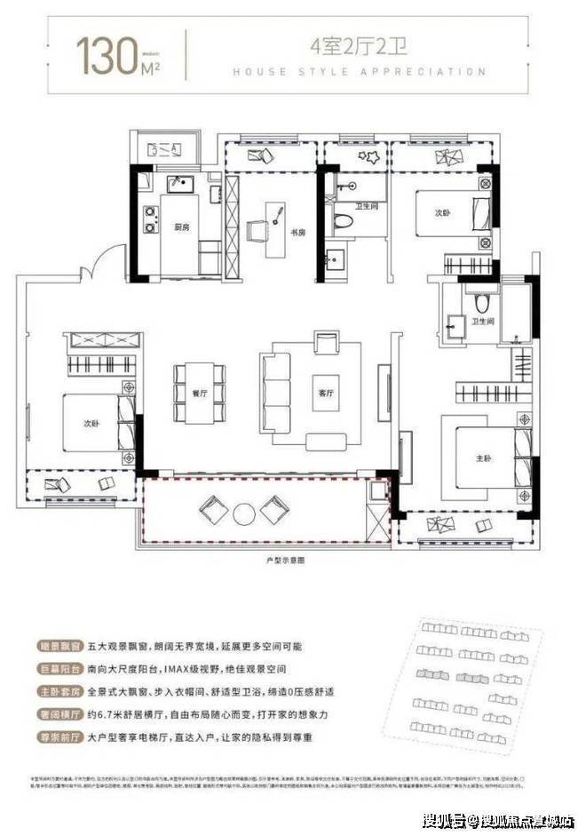 130㎡四居:4室2厅2卫(双套房设计),总价约160万-210万