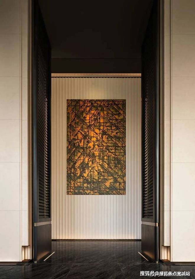 从高档材料的运用到开放式的空间布局,全屋奢石通铺,入户门厅匹配的是纹理低调的超白洞石搭配定制尺寸卡门,一眼看去,安全感满满。进门后,意大利进口石材全屋通铺,每一处地砖流水型纹路都能对应,需要提前至少2年预定的梅西同款进口芬迪白石材被用作电视背景墙,阔绰感不言而喻。