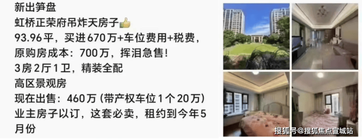 实际上,虹桥正荣府想要“亏本”离场的人大有人在,就拿93.9m²户型举例,现在在挂的还有两套,远低于700万,你真的会买吗?(盲猜上面那个房东是2021年买在顶点)
