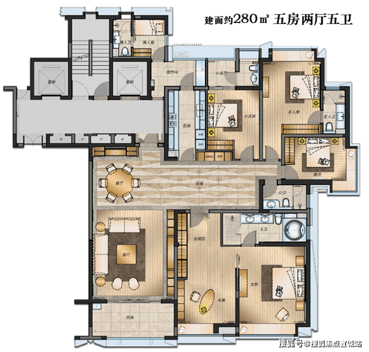 建面约280m²大平层(5房2厅5卫)