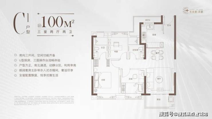项目得房率普遍达80%-82%,远高于市区平均水平。以热销的105㎡三房两卫为例,采用LDK一体化设计,连接6米南向阳台,主卧套房带飘窗,次卧可灵活改造,双卫干湿分离,空间利用率极高