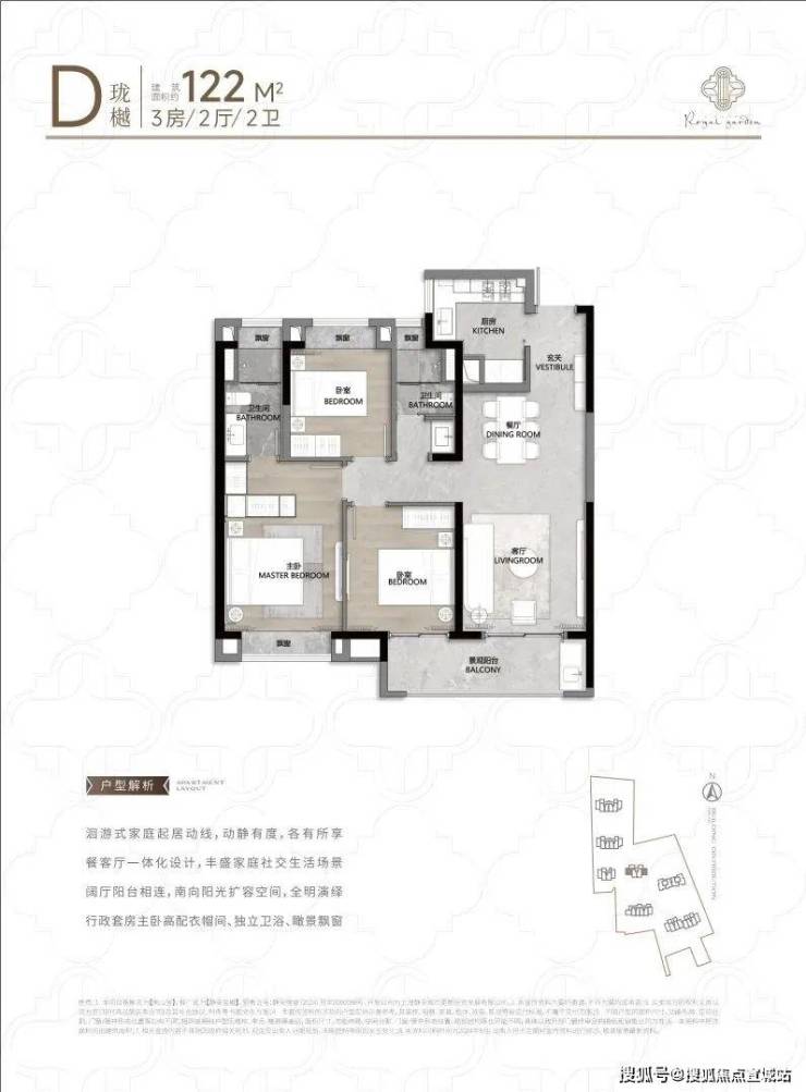 整体来看,这套122㎡通透全明户型,户型方正,空间利用率大;