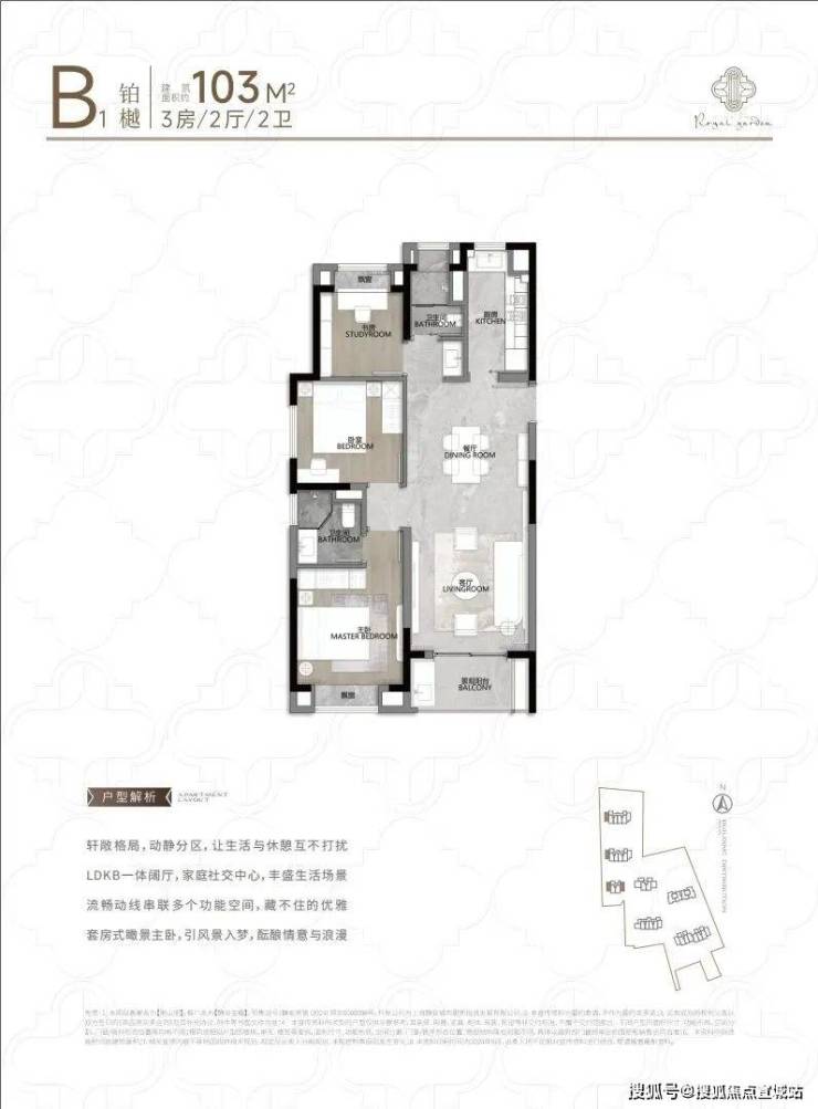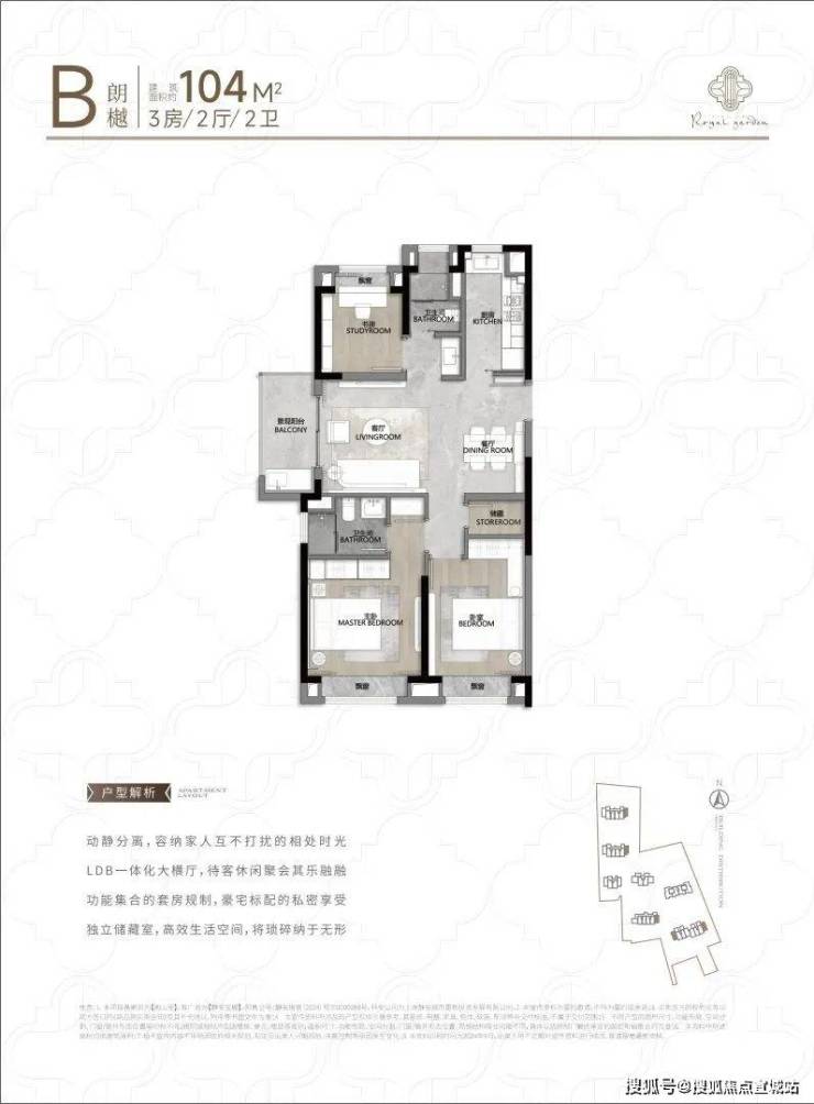 全明卫生间干湿分区、通风防潮。这套104㎡的3房2厅2卫,南北通透,户型方正,合理规划功能布局,追求品质人群优先好选择。