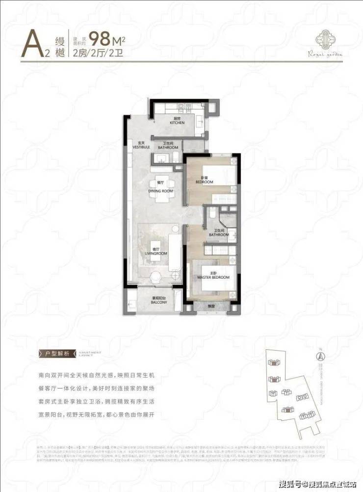 建面约98㎡2房2厅2卫