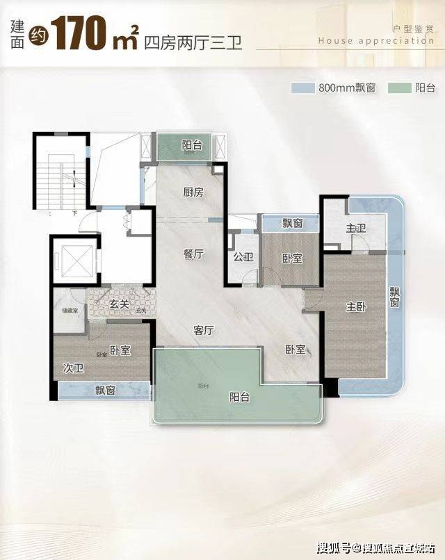 170㎡户型位于二期C位,南向楼间距近50米,户户三面采光,客厅融入保利首创的全景舱设计,消弭两侧墙体后使用面积拓展约15%,采光面提升30%。同时,二期大户型石材升级为意大利达芬奇奢石,厨电交标同步优化,3米层高(部分楼栋3.3米)进一步提升空间舒适度,远超同区域高层产品。