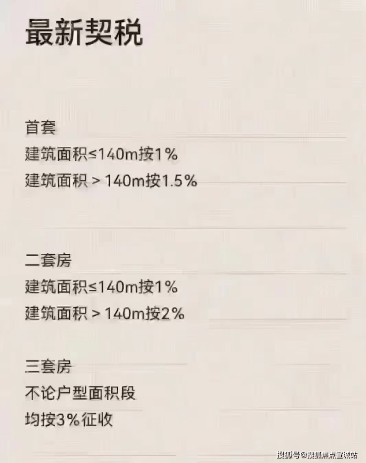 2、享受低税率优惠的面积标准提高:此次调整还将现行享受1%低税率优惠的面积标准由90平方米提高到140平方米,这意味着更多购买中小户型的家庭能够享受到契税的优惠。