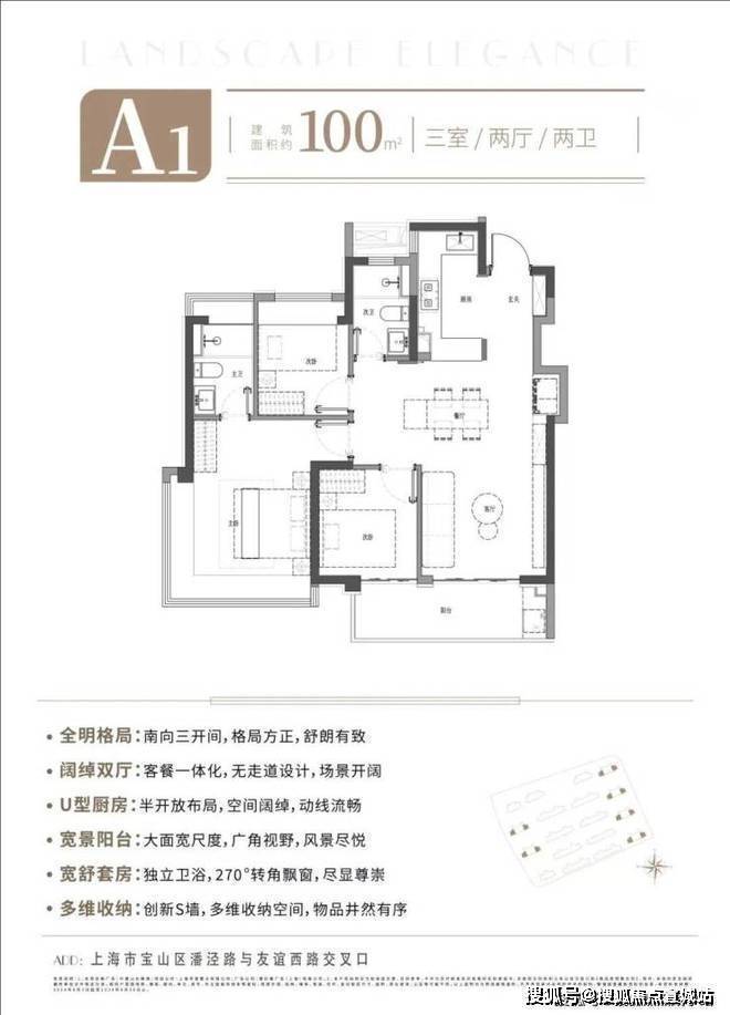 功能主义户型:100㎡三房实现三开间朝南+270°主卧飘窗;144㎡四房采用客餐一体化+四开间朝南,7.2米阳台引景入室23。