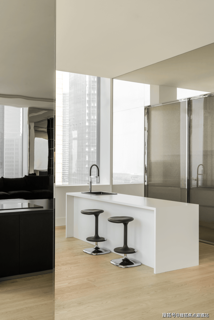 大面积落地窗引入自然光线,镜面处理让光更加浓郁.