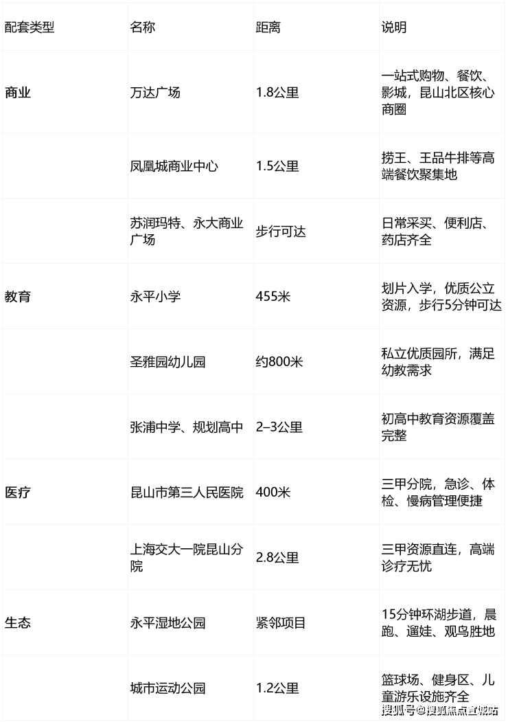 医疗配套:小区附近有 5 座医院,昆山市第三人民医院、上海交通大学附属第一人民医院昆山分院距离项目直线距离约 2.8 公里。