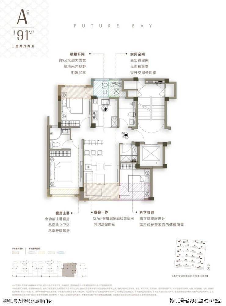 建面约91方户型:
