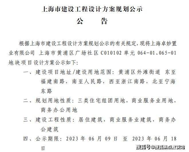 其实早在去年6月9日,上海市资源与规划管理局就公布了黄浦区广场社区C010102单元064-01、065-01地块项目建设工程设计方案;