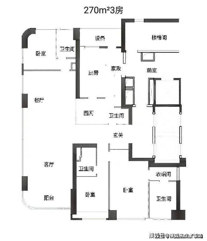 大平层:主力户型为建面约 270-640㎡,得房率 76%-78%。其中 270㎡为舒适四房,三开间朝南,主卧套房配独立衣帽间及露台;640㎡顶复五房,南北通透,20 米南向采光面,附赠 80㎡空中花园。