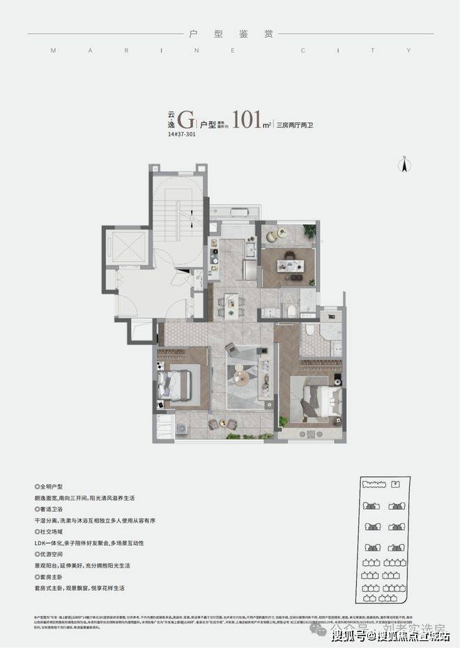全卧室飘窗、干湿三分离、U字型厨房设计,细节把控到位!