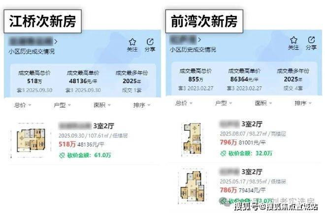 但现在再看,江桥次新二手房成交价只有4.8万/㎡,反观前湾次新二手房还能稳在8万/㎡!