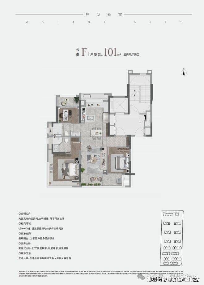 项目建面约101㎡的南厅边套户型,阳台面积接近12㎡,还有超过8㎡的飘窗,再加上设备平台等面积,房间的实得率比起松江目前在售待售的所有项目都要高!这不是绝版是什么?