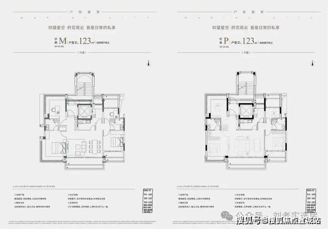 而中叠(建面约123㎡)则集便利与尺度于一身:不仅配备独立电梯厅,更以约13.4米南向面宽、约6米宽厅及南北双270°转角飘窗,营造出宽幕视野与通透空间,体感媲美整层大平层,实得率几近“满格”。