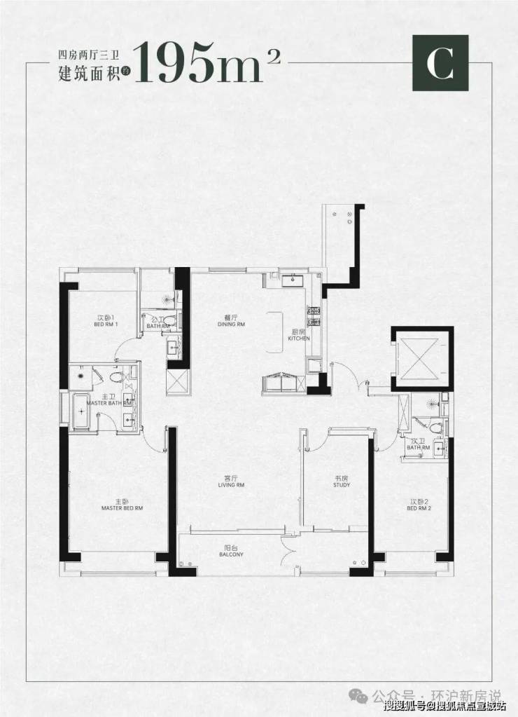主力户型:建面约 143-195㎡三房至四房,其中建面约 143㎡三房有 84 套,建面约 168㎡三房有 206 套,建面约 195㎡四房有 114 套。