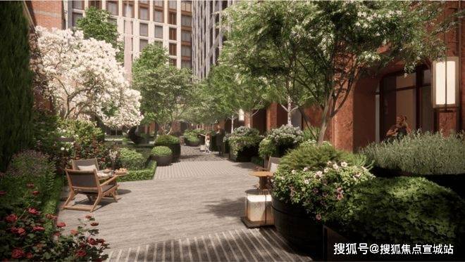 秩序与节奏是景观设计的基本表现形式,突显园林之美的同时也具备实用性。项目特别设计由宽入窄的线型园林,充分利用了每一寸空间,从开阔的弄堂巷道,到专属的私家庭院,也对应着从开放到私密的归家心理变化。