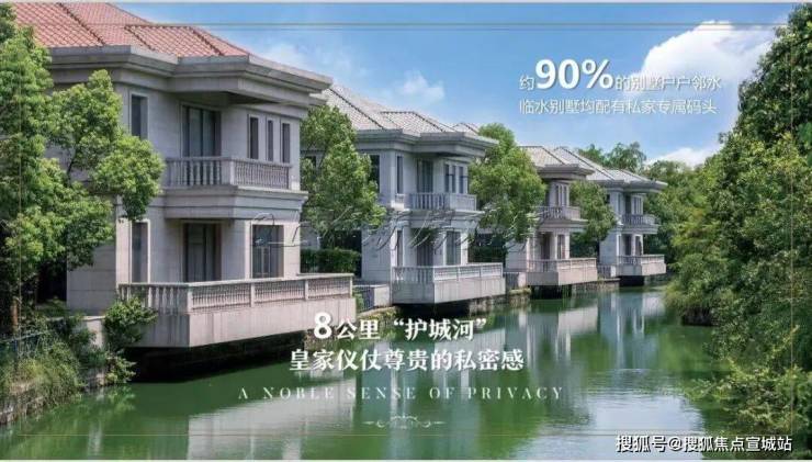 项目规划配有大量草地绿地、树木、各种花草,开挖护城河道,形成1个半岛+13个小岛的分布格局,还在公路旁种植具有观赏和隔音作用的树木,西侧的花墙长达一千米多,力求成为一个一面临山、四周环河、安然静谧的佘山别墅“世外桃源”。