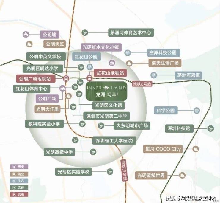 项目一平方公里范围内聚集光明历史,商业、生态,文体、交通五大城市群中极核资源。