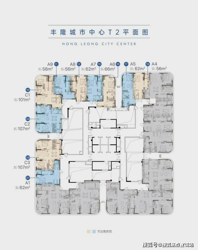 丰隆城市中心已经是现房,可售房源均位于T2,楼层12-32层,建面约55-107㎡,精装交付。