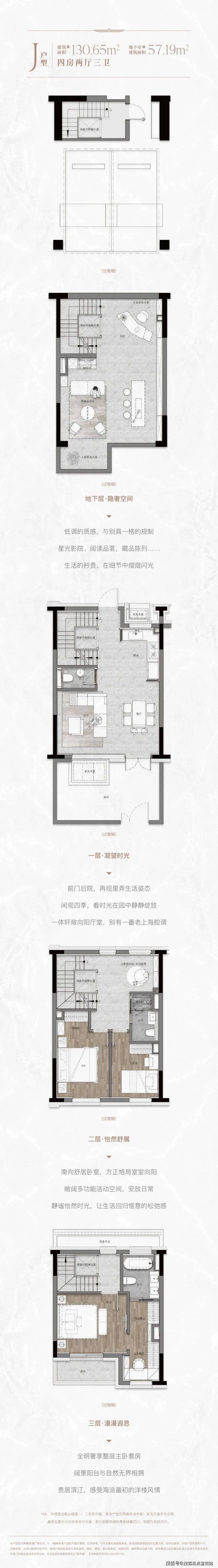 入门级联排别墅:180㎡户型独门独院,带35㎡私家庭院与地下拓展空间,三层主卧套房配8㎡露台,满足改善家庭的品质追求;
