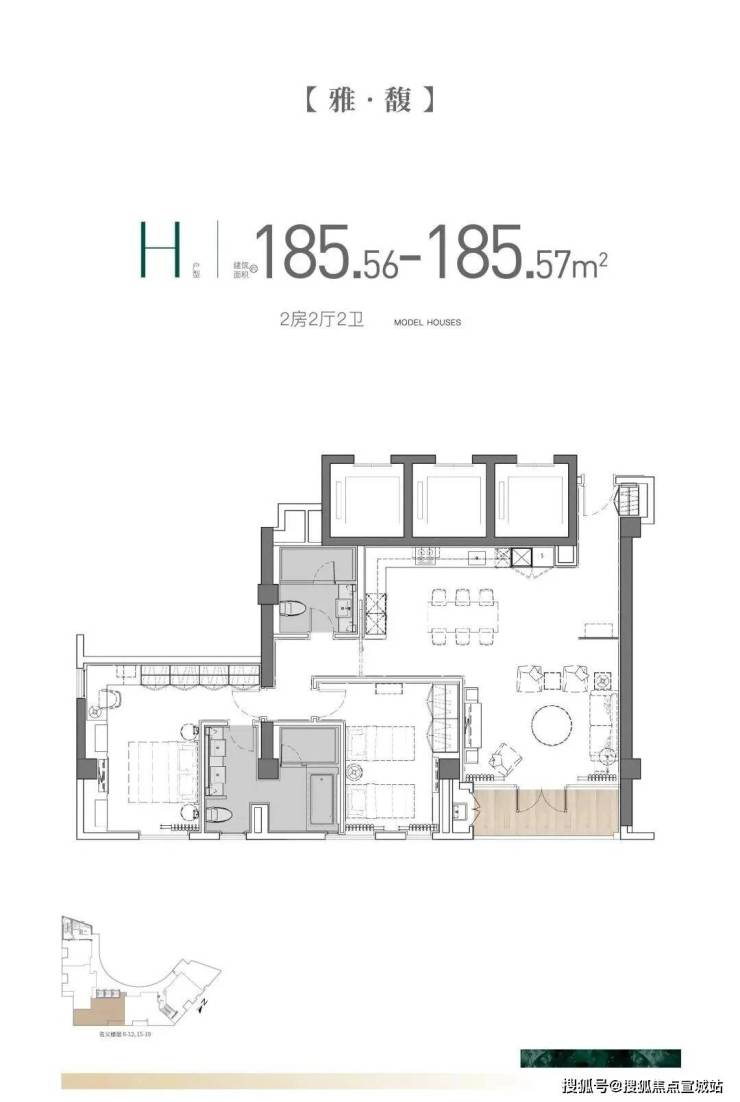 主力户型为建面约110.12㎡、建面约172.05㎡、建面约185.56㎡: