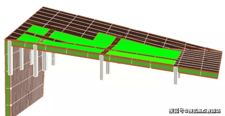 屋顶金属飘蓬为空间折面板对拼,不共面;为了指导钢结构工程的现场施工定位,弗思特重新根据混凝土结构图、钢结构图、建筑图还原了金属屋面表皮、钢龙骨以及金属格栅的模型,并根据模型反提了控制角点的定位坐标、标高,为现场施工提供了强有力的技术支持。