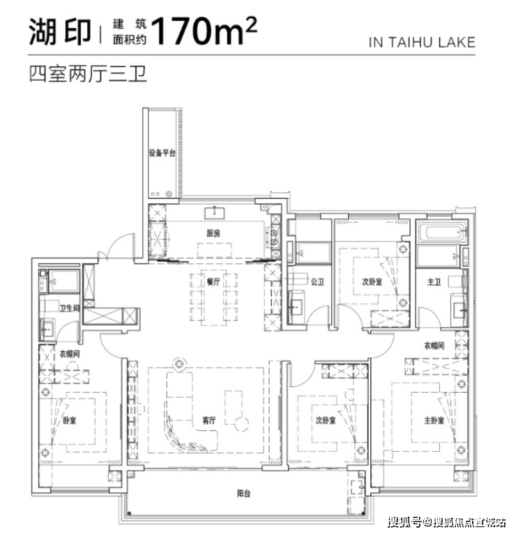 建面170㎡:4室2厅3卫,朝向南,总价约440万元/套