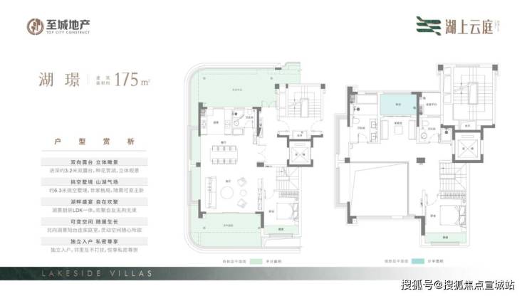 湖上云庭是太仓首个第四代住宅项目,由至城地产开发,位于科教新城书院路北、鹊桥路东地块,天镜湖南侧。项目总建筑面积约8.1万㎡,规划12栋8-11层低密住宅,主打175-290㎡的立体生态叠墅产品,总户数246户,容积率仅1.2,绿地率达37%,得房率最高达91%,营造出静谧舒适的居住环境