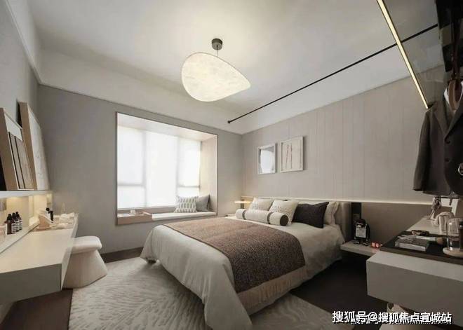 售楼处电话☎:400-8862-334✔✔卧室的家具线条简约流畅,不同材质的运用和碰撞,灵动着整个空间之美。自然的元素点缀其中,一种浪漫诗意与空间设计感、交响的呼应关系衬托出休憩空间的舒适氛围,巧妙地融入挂画、花艺、台灯等陈设,升华了生活意趣的体验深度。
