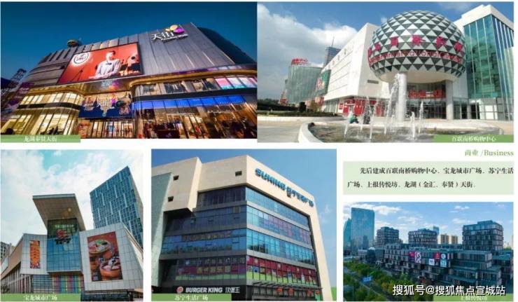 生活半径范围内商业醇熟完善,拥有龙湖天街、百联、苏宁、传悦坊、宝龙广场等大型商业综合体,西侧约25万方超大商业综合体——金鱼广场也在有条不紊地建设中。