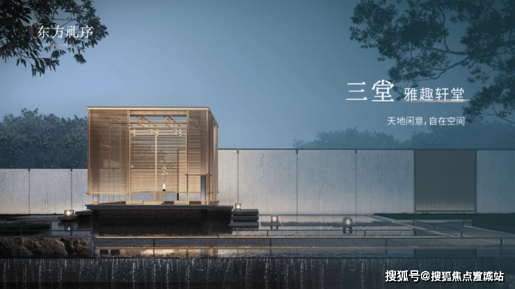 一园三堂的归家动线,象征着东方人文礼序。建筑风格造型,灵感源自金镶玉设计,提取其“曲”的形和白金配色应用到塔楼立面上,彰显项目的温和雅丽与尊贵典雅。
