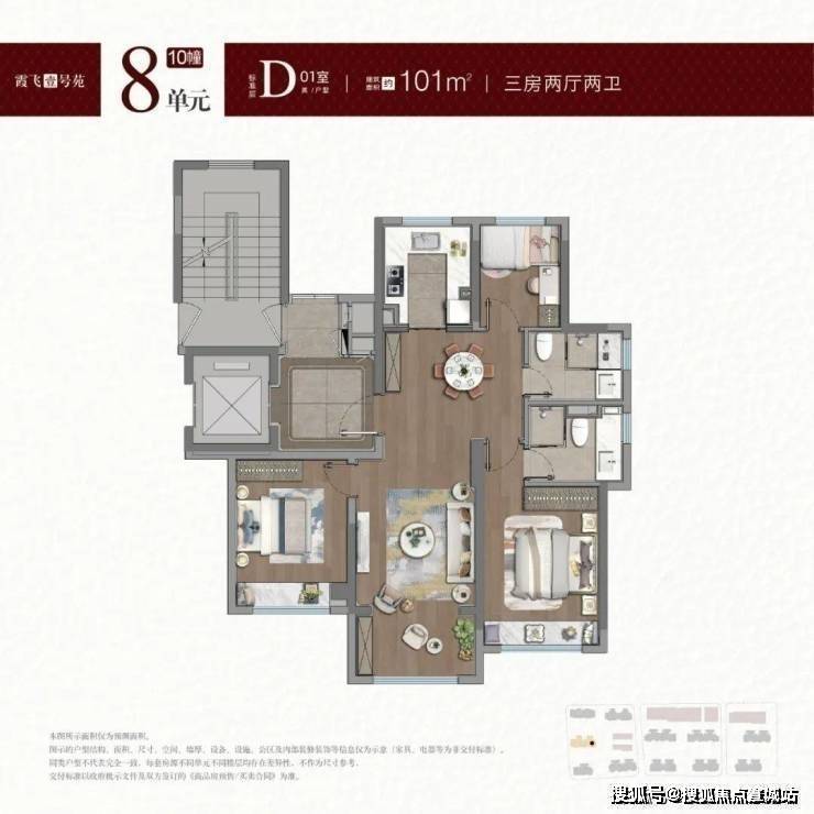 高层产品:建面约 98-122㎡三房,得房率约 78%,采用类独立电梯厅设计,无连廊 + 飞机户型实现南北通透。