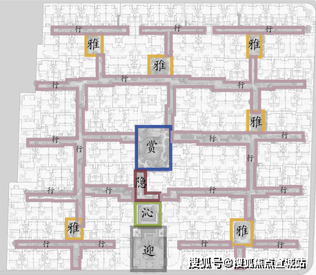 “五进式”的园林中轴上海桃花源师承苏州园林五进制序列,打造出“迎宾院-迎、主峰院-沁、水溪巷-隐、中轴央景-赏、组团园林-雅”的游园路线。目前,这是中式园林中最富层次的江南园林主轴线,彰显上海桃花源的世家之仪。
