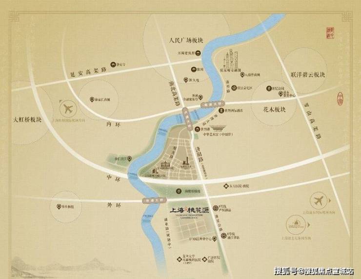 上海桃花源的择址,与传统市中心人民广场在南北中轴线上,由济阳路快速路、中环、外环以及各大隧桥快速连通市区,这是项目出则繁华的基础。