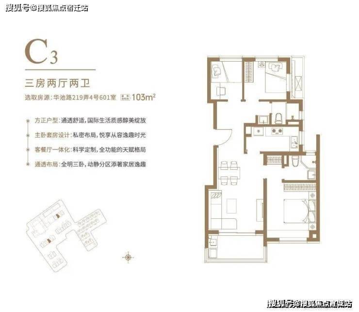 户型设计灵动,项目建面约97-106㎡臻谧洋房,清一色100平左右户型,均价约10.4万/平,无需积分,可直接认购。