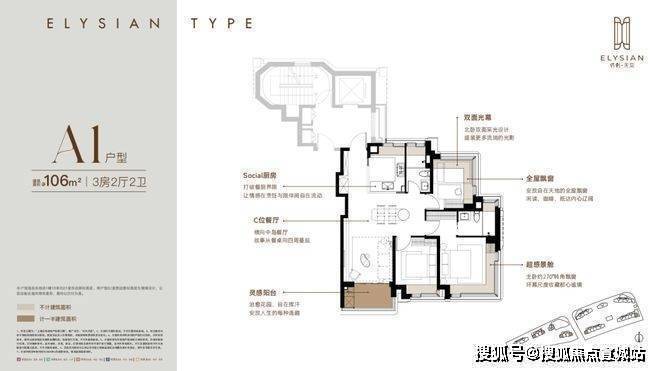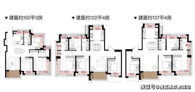 每个户型至少6个飘窗,边套更是约270°转角瞰景。