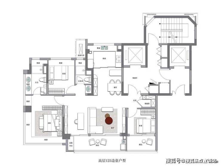 建面约125㎡高层户型