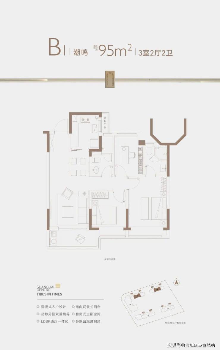 在格局上,户型三开间朝南+动静分离,室内通风、私密性俱佳。