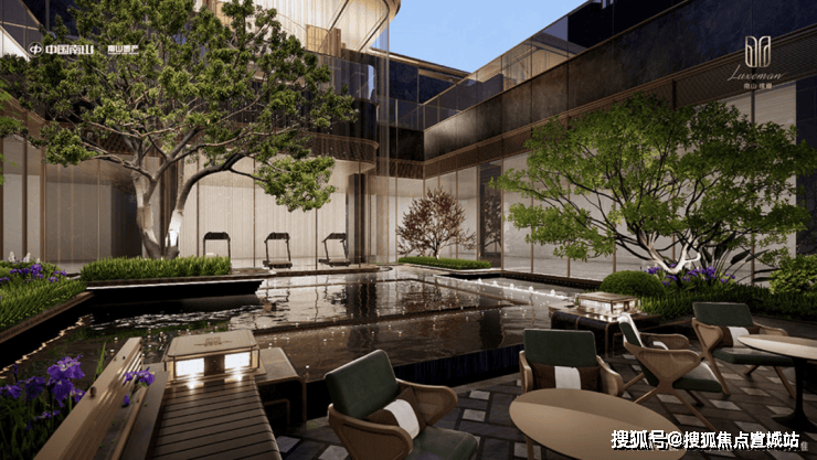 嘉定主城首个下沉星光悬瀑水景庭院,对标佛罗伦萨四季酒店,融入“琉璃水光”的独特形意,打造酒店式归家体验。