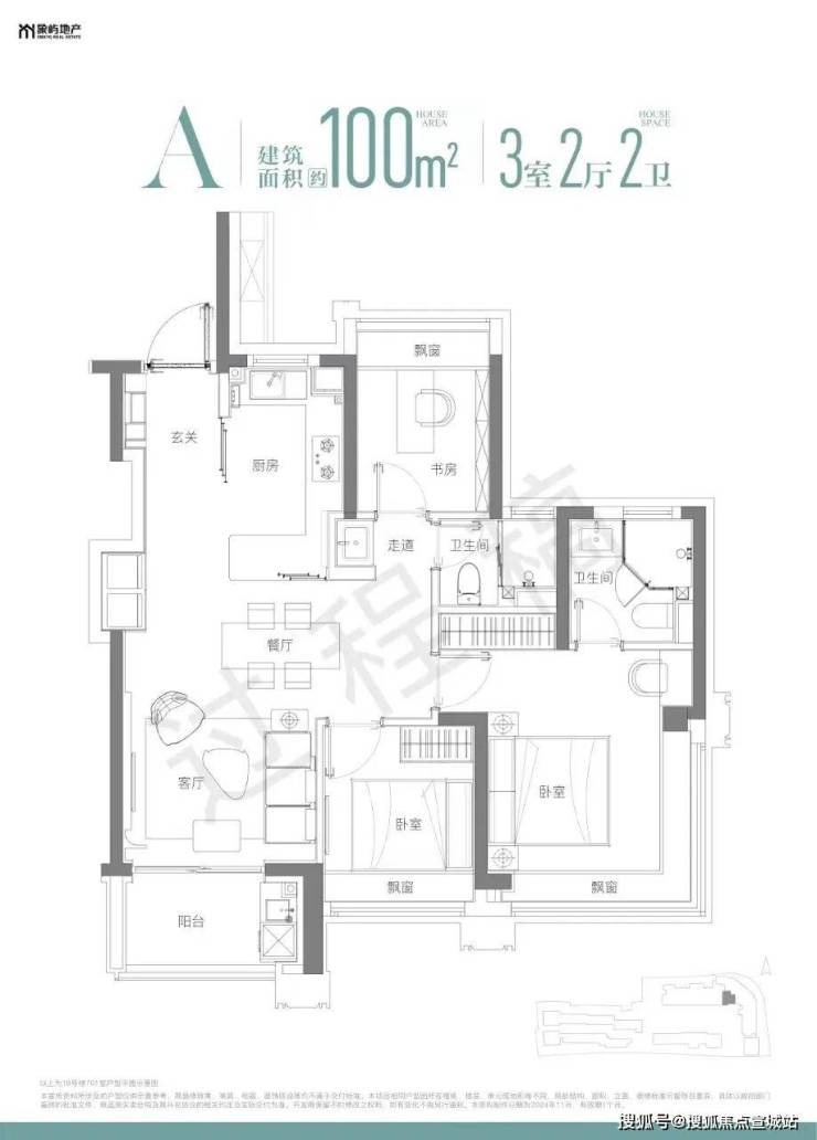 项目由高层和风貌别墅组成,高层产品建面约100㎡,风貌别墅约190-220㎡。