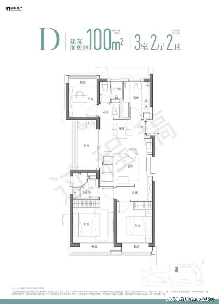 建面约100㎡高层3房共132套