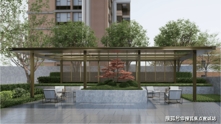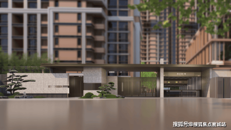项目的大门归心庭采用云朵拉灰+铝板+铝格栅的搭配,低调又大气;