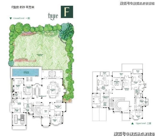 空间布局:地上两层、地下两层,含双车库、挑高宴会厅及南北双花园,户均占地 1.5-2.5 亩。