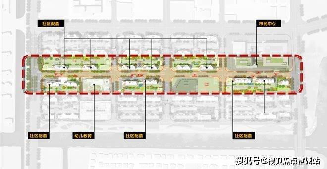 社区配套:社区核心规划 1.2 公里生活街区轴,串联文化活动室、社区服务中心、邻里广场等。